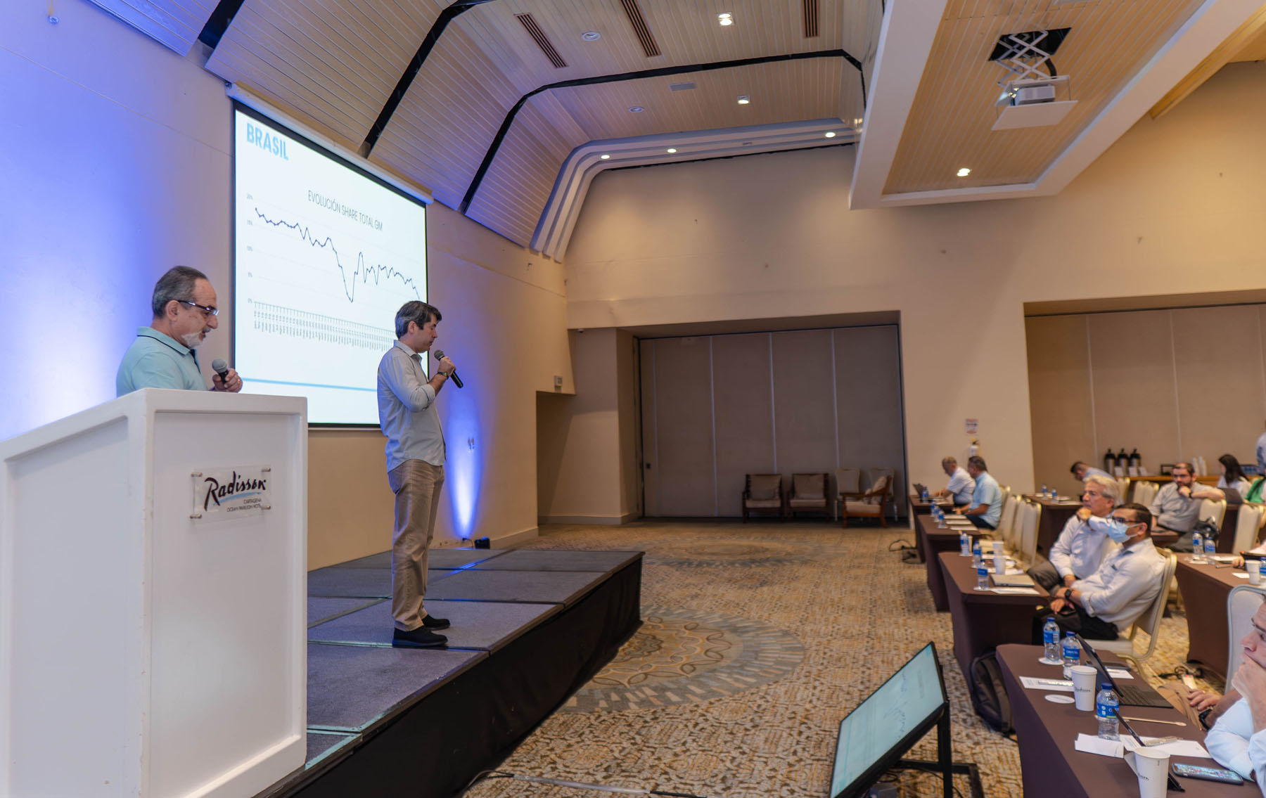 O presidente da Abrac, Tomas Silveira Guimarães Filho, e o superintendente Décio Farah marcaram presença no encontro da associação colombiana, destacando o papel significativo da Rede Chevrolet no Brasil e o relacionamento duradouro e bem-sucedido com a GM.